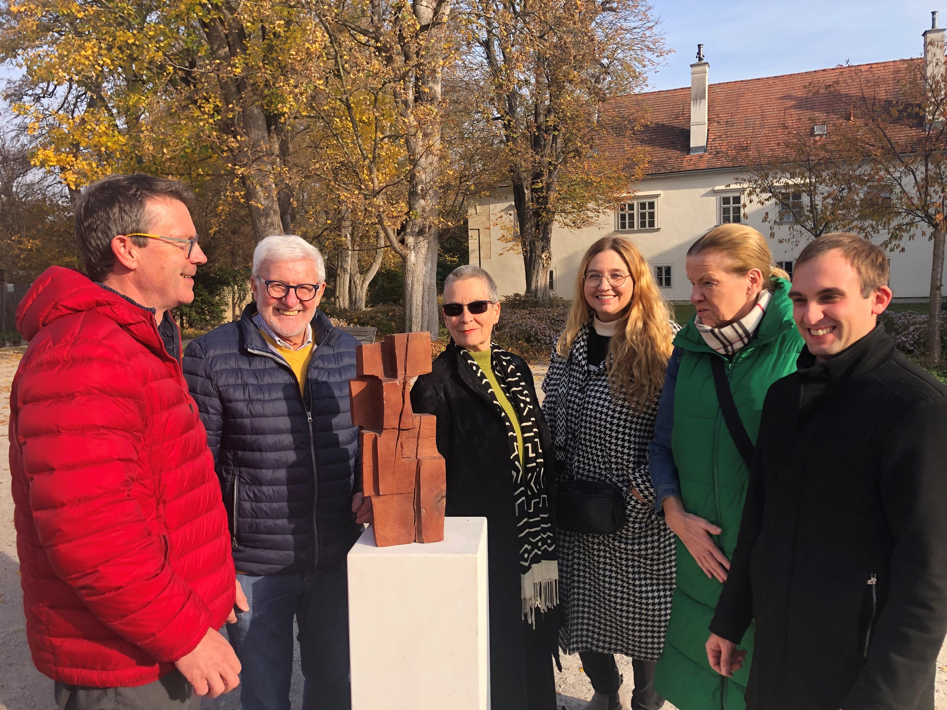 FOTO v.l.n.r.: Stephan Gartner (Projektleitung), Reinhard Sandhofer (Kultur Schneebergland), Reha Uher und Kathrin Bernhart (Künstlerinnen), Brigitte Zottl (Gemeinderätin), Sebastian Goldfuß (Stv. Bgm. Bad Fischau-Brunn)