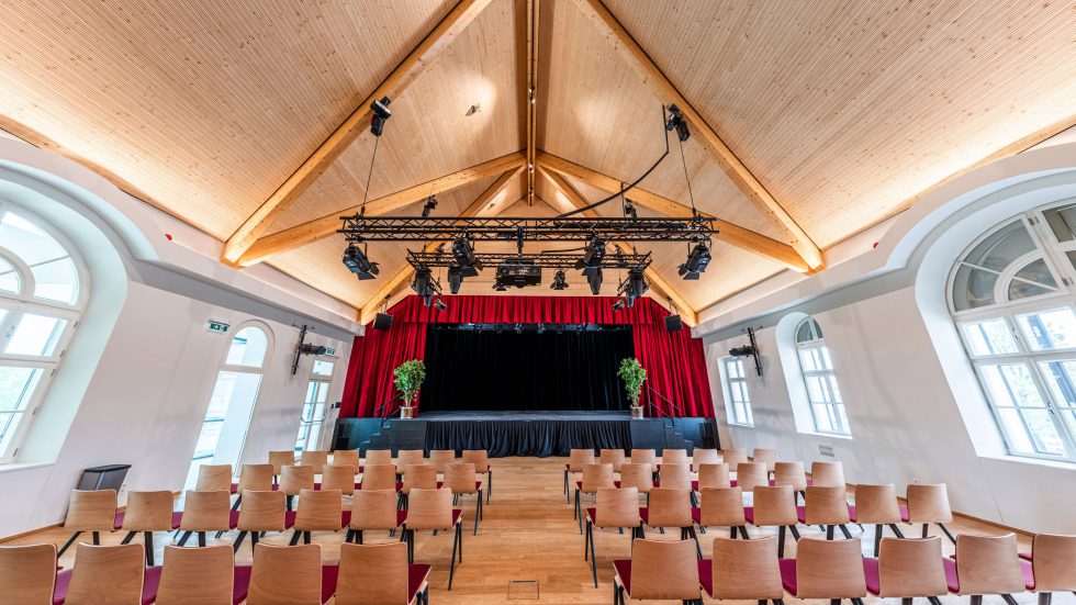 Mit einer knapp 100m2 großen Bühne, Backstage-Bereich, Ton- und Lichtanlage, Multimedia- und Konzert-Equipment sowie einem Konzertflügel, sind vielfältigen Veranstaltungsformaten und Nutzungsmöglichkeiten kaum Grenzen gesetzt. Der große Saal hat eine maximale Kapazität von 330 Personen.