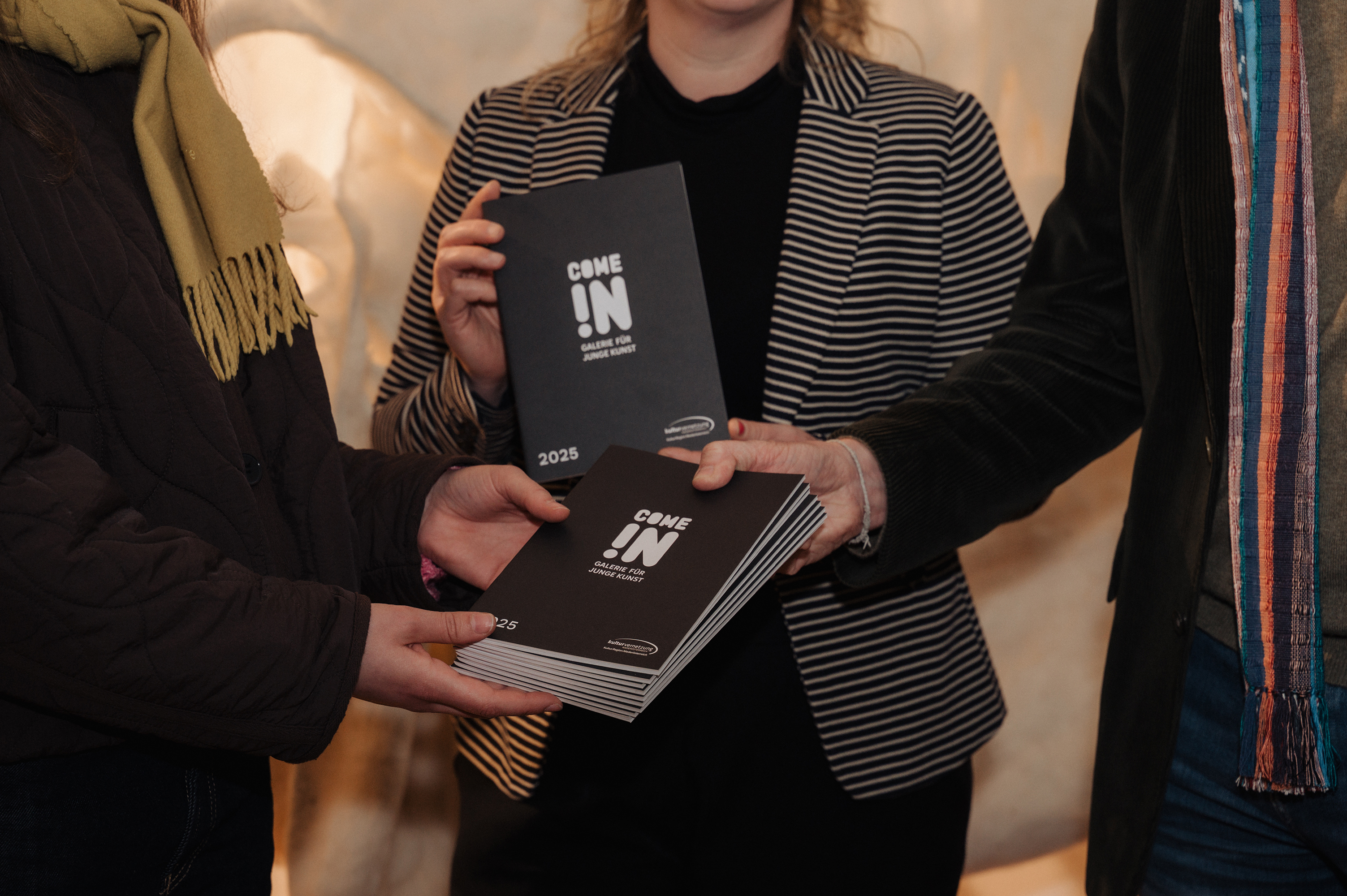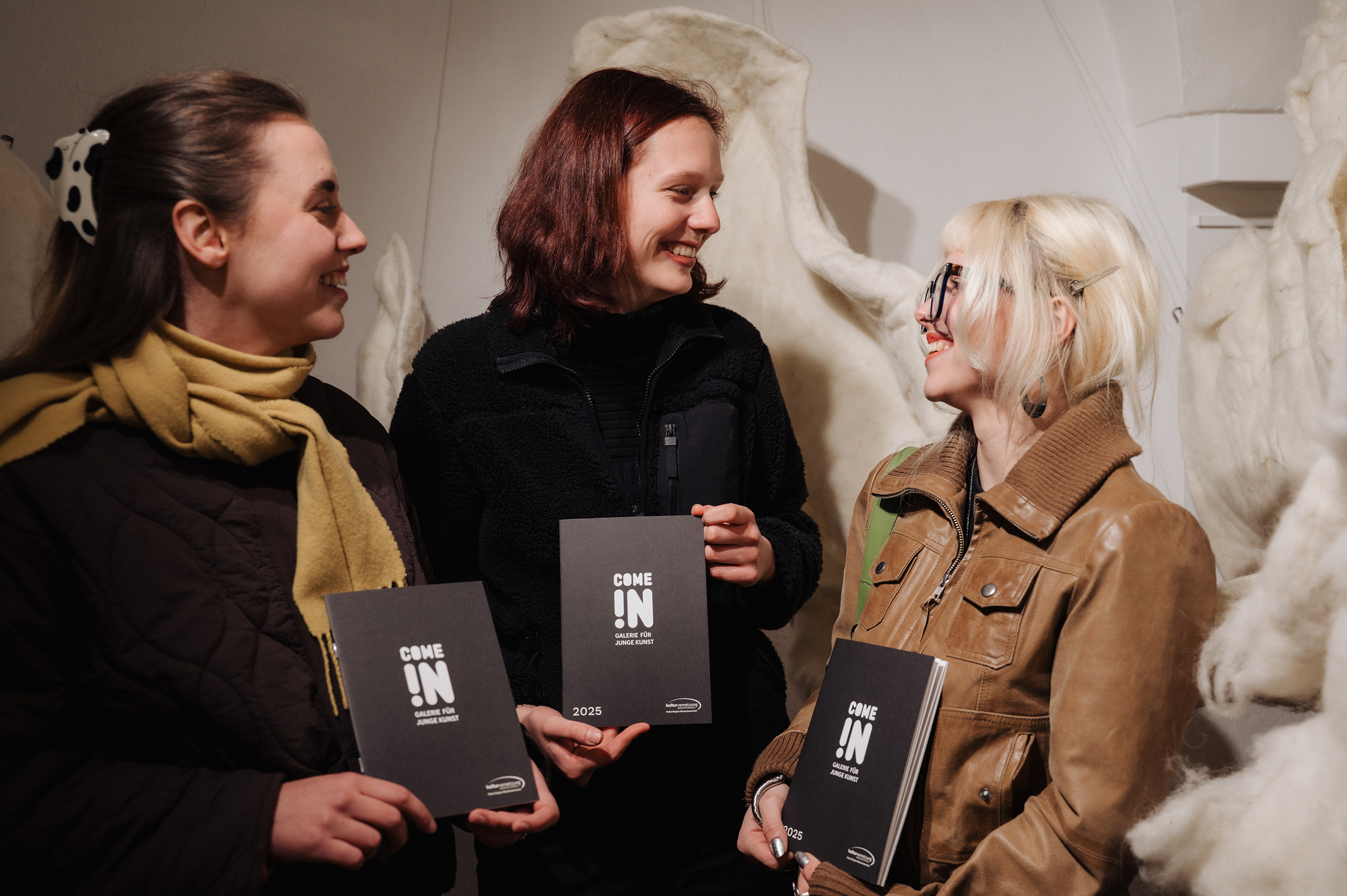 - PA KVN Opening CharlotteFiedermutz06 (c)DianaBachlerDie Künstlerinnen Valentina Ilazi, Charlotte Fiedermutz und Valentina Pilz (v.l.n.r.) schmökern in der Come In! Galerie Abschlusspublikation 2025. Alle drei haben oder hatten bereits eine Ausstellung in der Come In! Galerie.Foto: Diana Bachler(JPG, 3,2 MB)